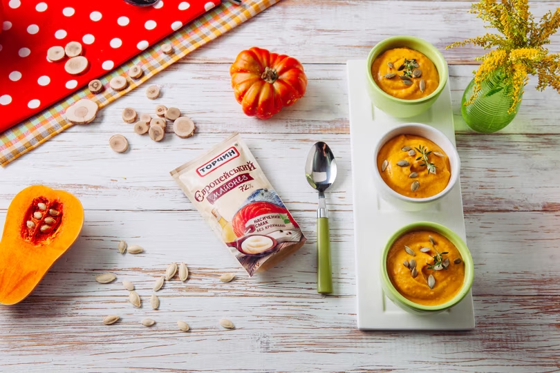 - Додайте майонез Торчин® «Європейський». Він зробить суп густішим та шовковистим.