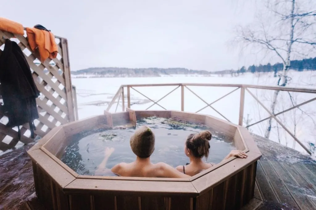 Купание в дубовом чане под открытым небом