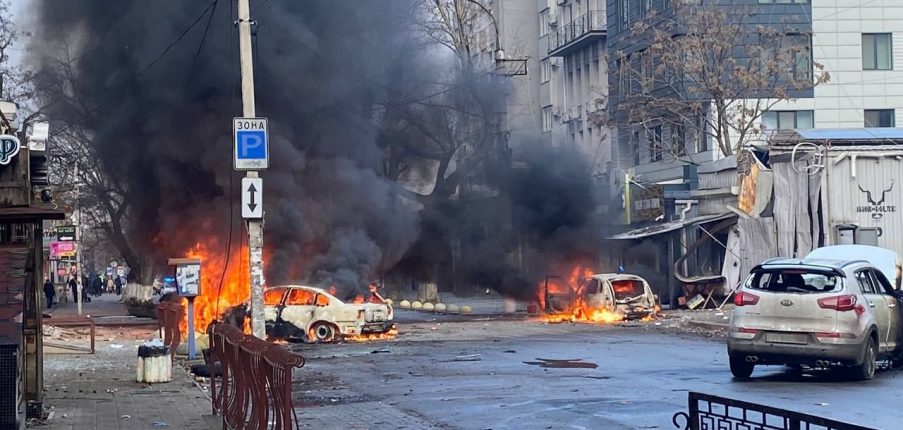 Утром российские военные совершили очередной террористический акт против мирных жителей. В результате удара разрушены здания, люди погибли прямо на улице и в горящих автомобилях.
