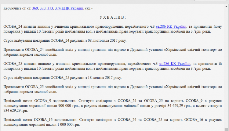 Приговор виновникам смертельного ДТП на улице Сумской в Харькове теперь находится в свободном доступе. Соответствующий документ опубликован в Реестре судебных решений.