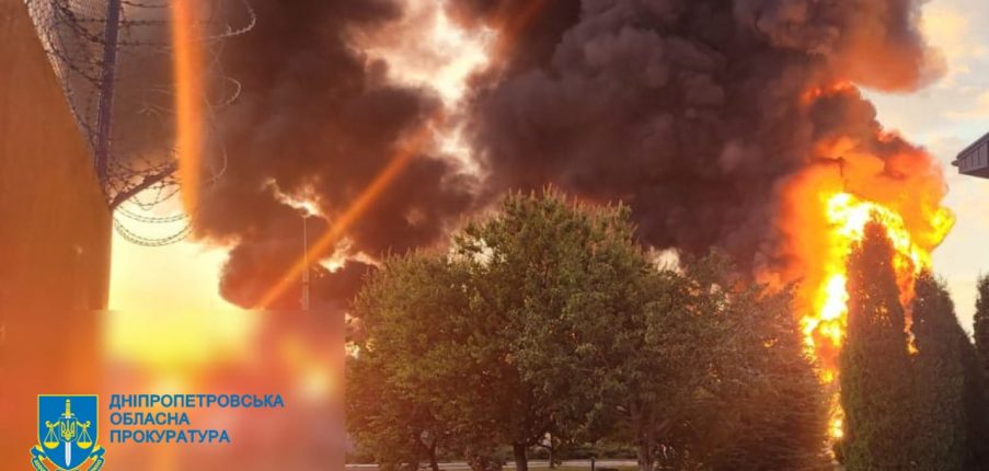 В Днепропетровской области правоохранители расследуют очередное военное преступление рашистов. Вечером 18 июня они нанесли ракетный удар по нефтебазе в Новомосковском районе. Об этом сообщили в Офисе Генерального прокурора.