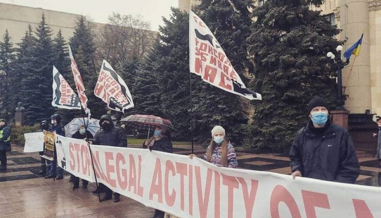 Активисты движения “Антикоксохим” вышли с протестом под стены областной государственной администрации. Несколько десятков человек держали в руках плакаты “Ми проти видобутку газу поряд з нашими оселями”, “Брудне повітня — загроза здоров’ю харків’ян.