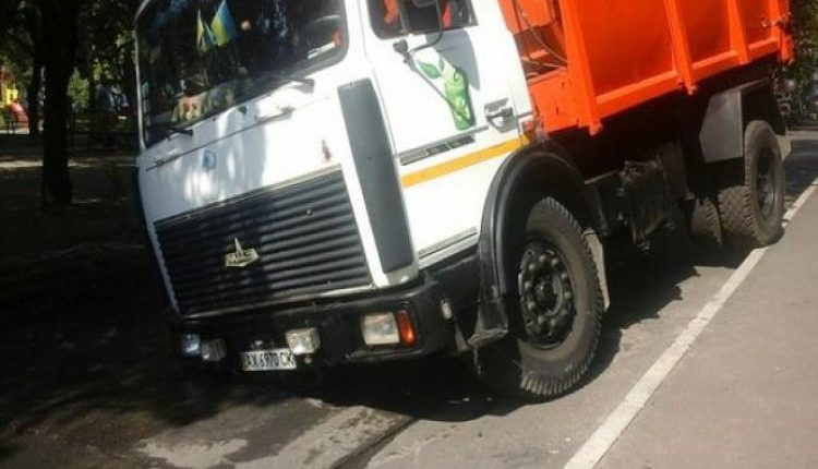 В Харькове на улице Космической мусоровоз провалился под асфальт.