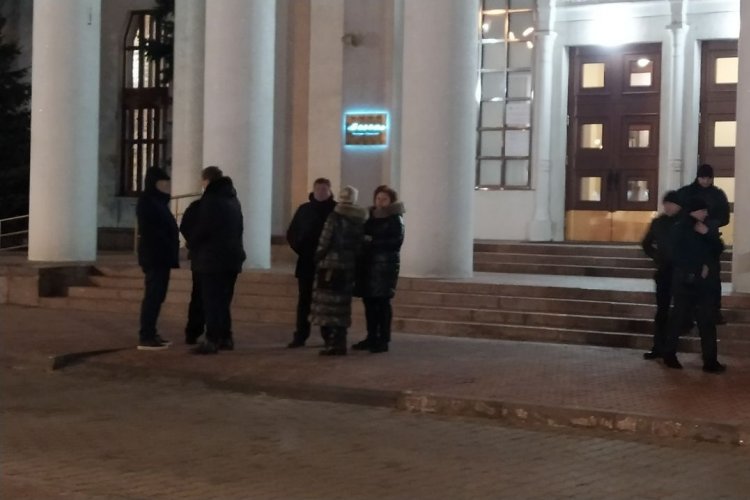 Возле терминала дежурит карета скорой и два полицейских патруля.