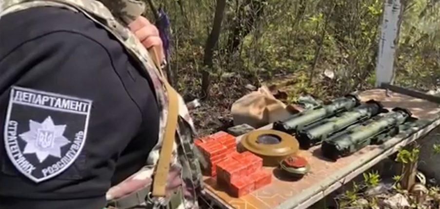 Полицейские нашли тайник с оружием и боеприпасами. В нем были ручные противотанковые гранатометы, мина, а также почти 10 килограммов тротила. Силовики изъяли “улов” и устанавливают, кто причастен к незаконной деятельности.
