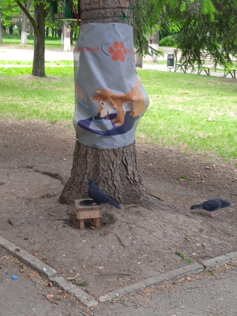 В парке рассказали, что у них обитают разные животные – белки, зайцы, беспризорные собаки. Для животных и птиц установили специальные поилки.