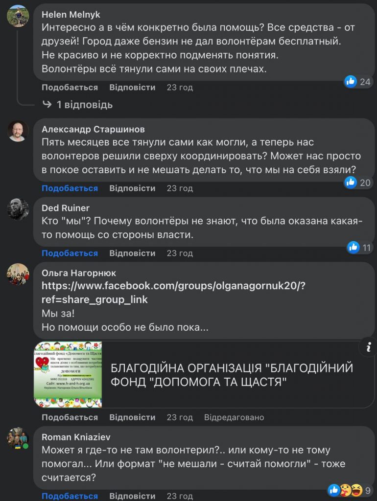 Позже городской голова сообщил, что встретился с представителями десятков волонтерских организаций, и они поддержали идею создания координационного совета.