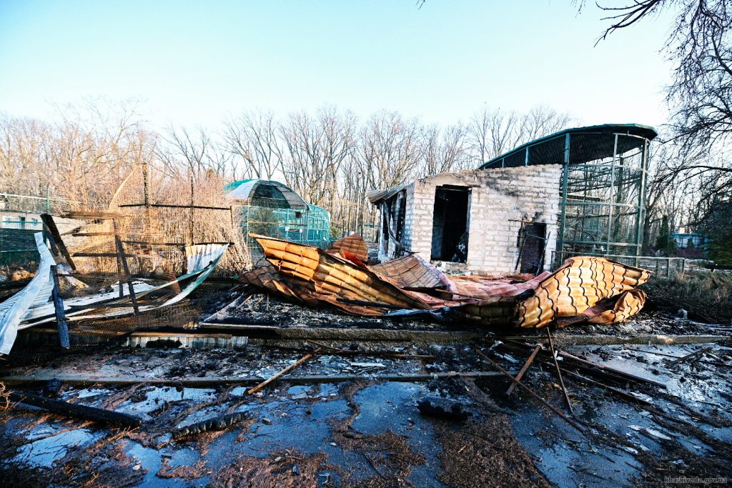 На території екопарку зараз можна спостерігати значну кількість пошкоджених снарядами будівель та повалених дерев.