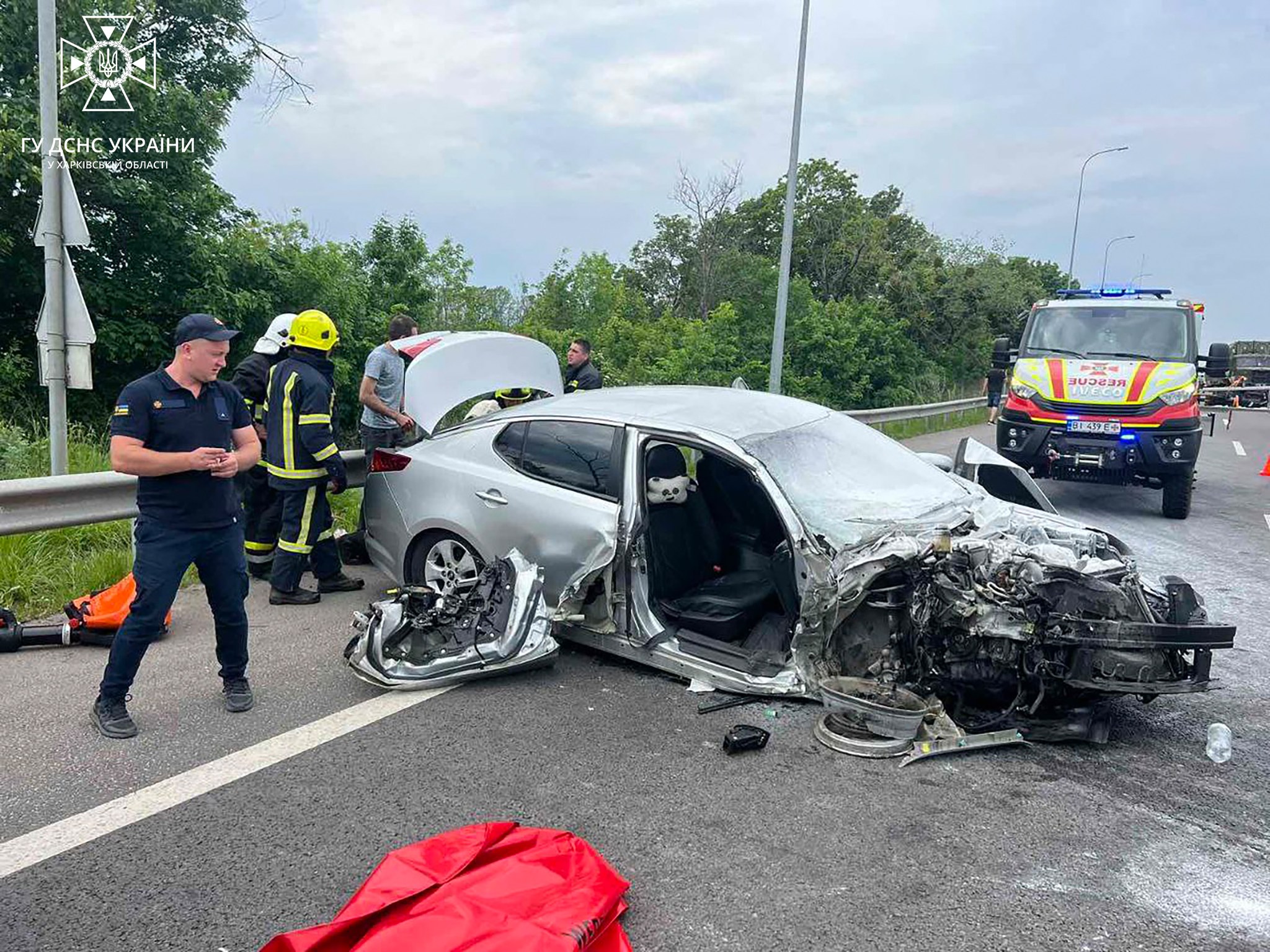 Як повідомили у пресслужбі облуправління ДСНС, до місця події було направлено рятувальників 21-ї Державної пожежно-рятувальної частини із селища Коломак, а також їхніх колег з селища Чутове Полтавської області. Прибувши до місця виклику, працівники Служби порятунку спершу вжили заходи щодо від’єднання клем акумуляторної батареї легкового авто та перекриття подачі газу в газовій системі з метою запобігання загорянню. Потім за допомогою спеціального інструменту вони деблокували постраждалу жінку з переднього пасажирського місця і транспортували її до карети швидкої допомоги. Також вогнеборці провели очищення проїзної частини дороги від розлитих паливо-мастильних матеріалів.