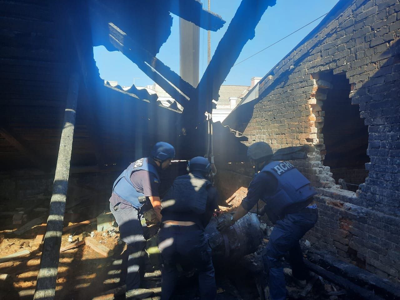 “Сапери Міжрегіонального центру гуманітарного розмінування та швидкого реагування ДСНС України прибрали залишки ворожої ракети після нічного обстрілу. Для вилучення її з горища житлової триповерхівки задіяли важку техніку ДСНС”, – йдеться у повідомленні.