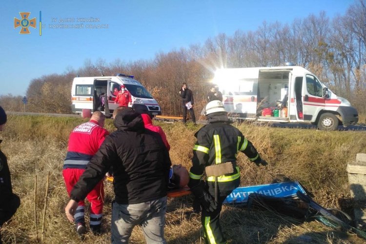 “Чотирьох доставили до Валківської лікарні. У трьох забої, у водія автобуса – перелом гомілки”, – повідомив Забашта.