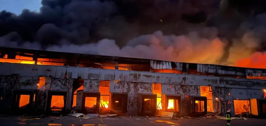 В селе Квитневое Киевской области 12 марта российские оккупанты обстреляли склад хранения замороженной продукции. В результате чего возник масштабный пожар. Об этом сообщили в ГСЧС Украины в Киевской области.