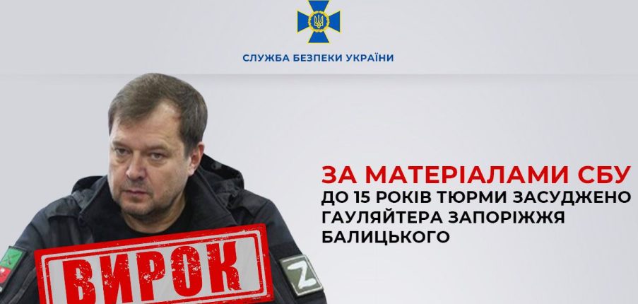 За матеріалами Служби безпеки України до 15 років позбавлення волі засудили очільника окупаційної адміністрації рф на тимчасово захопленій частині Запорізької області, Євгена Балицького.